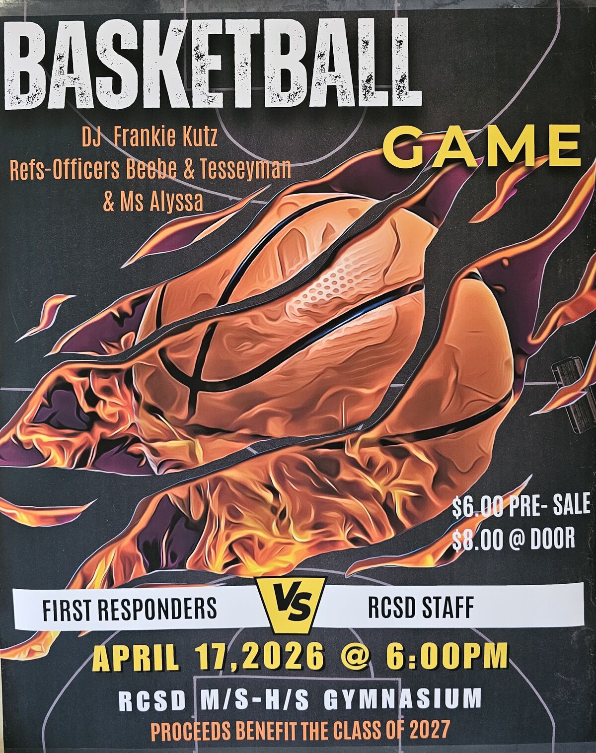 Come watch as local first responders take on Rockland Central School staff in a basketball game that will benefit the class of 2027! The event will feature DJ Frankie Kutz and will be refereed by S...