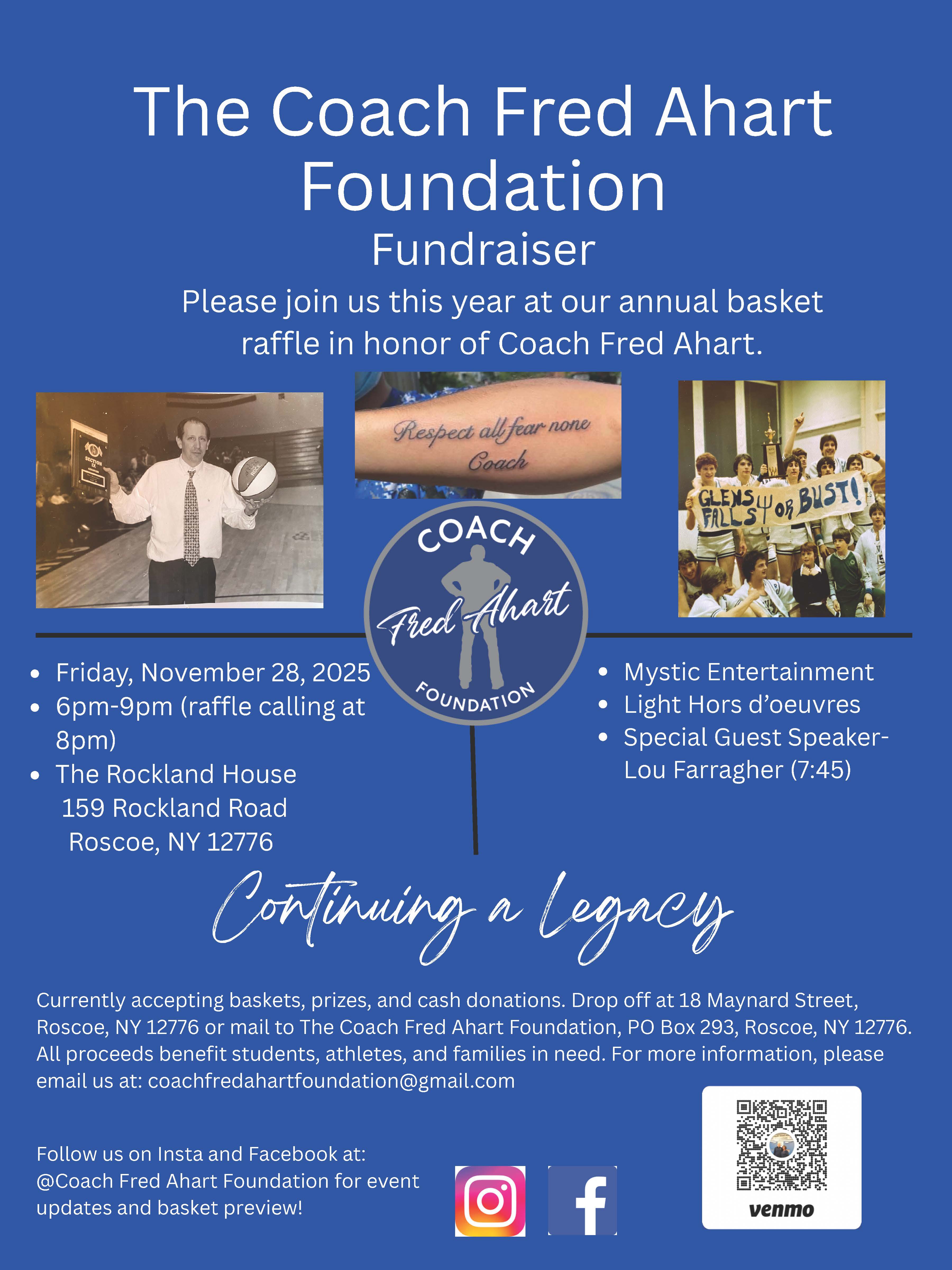 The Coach Fred Ahart Foundation will host its annual basket raffle on Friday, Nov. 28. The foundation, which was formed in memory of the longtime Roscoe basketball and football coach and New York Sta. . .