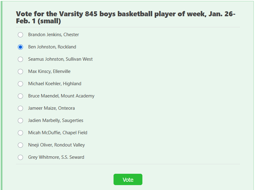 Let's Go Rockland!Varsity boys basketball player, Ben Johnston, has been nominated for Varsity 845 High School Boys Basketball Player of the Week for Jan. 36-Feb. 1! Ben earned this nomination thro...