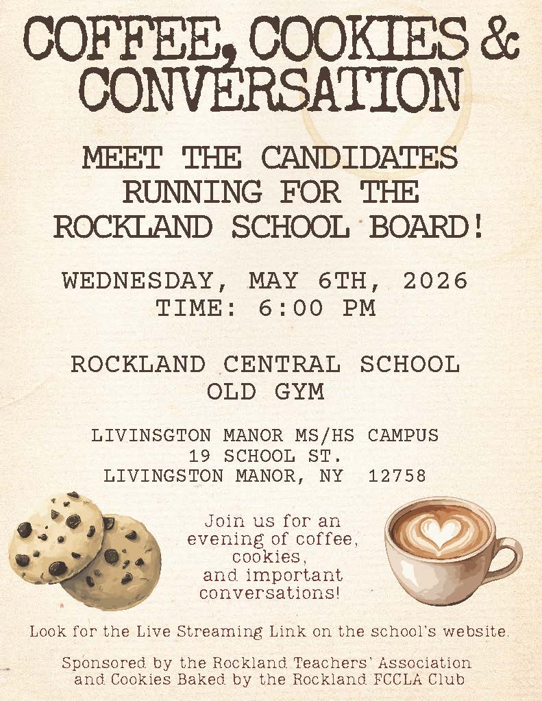 The Rockland Teachers' Association will host "Coffee, Cookies & Conversation" at 6 p.m. Wednesday, May 6. The event will give residents the opportunity to meet the candidates running for the sc...